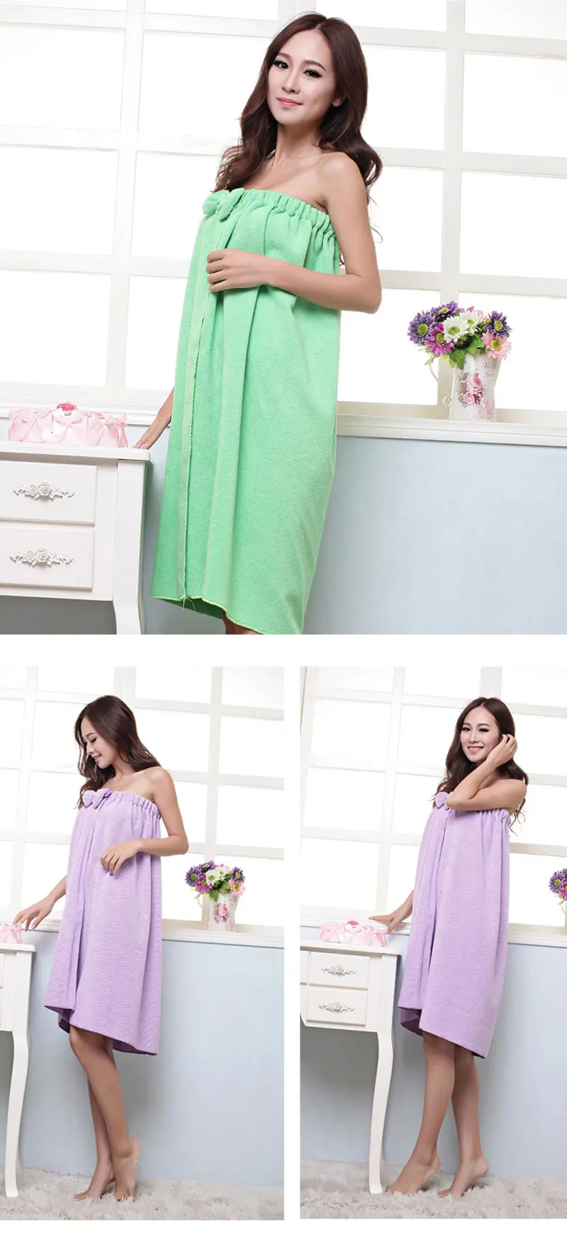 Women Microfiber Bath Towel Bath Robe Bathrobe Body Spa Bath Bow Wrap Towel Super Absorbent Bath Gown U0986
